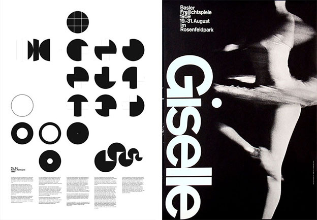 그는 포스터와 광고, 로고 디자인과 환경 디자인을 포함하여 다양한 영역에서 활동하였습니다. 그의 디자인의 특징은 디자인 요소간의 대비에 있습니다. 밝음과 어두움, 곡선과 직선, 움직임과 정지 등 주어진 디자인 요소들은 대비와 조화를 통해 높은 가치를 지닌다고 여겼습니다. 잘 알려진 그의 작품인 <지젤(Giselle)>의 포스터에서 유기적이고 동적인 사진 이미지가 기하학적인 악치텐츠체 글자와 강한 대비를 이루고 있음을 볼 수 있습니다.